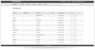 Easily see who has not checked in by viewing the Did Not Check-In list. This is a live list of all defendants who have not checked in. You can easily call people off the list to inquire why they have not checked in and either have them check-in or manually remove them from the list.